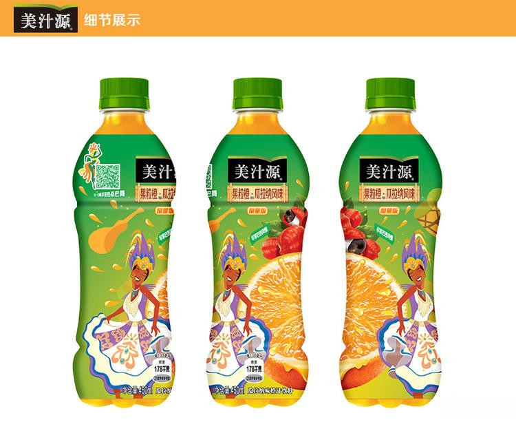 “淳萃”跟美汁源果粒系列比,除了瓶身和視覺有變化之外,值得注意的是“淳萃”的果汁含量比原來提高了許多。果粒橙和爽粒葡萄的果汁含量在 10% 左右,現(xiàn)在的“淳萃”檸檬味含有 30%復(fù)合果汁;橙的果汁含量達到了 40%。